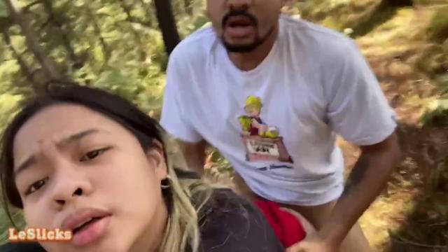 Взяв за руку чернокожего мужика, порочная азиатка с пухлыми губками тащит чувака в лес. Устроившись возле высоких деревьев, похотливая телочка осмотрелась по сторонам, присела на корточки перед партнерам и стала баловать отсосом. Облизав хуй, довольная шалунишка встала раком и впустила конец в сырое лоно.