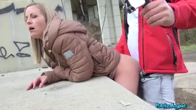 За хорошее денежное вознаграждение прыткая телка побаловала незнакомца стриптизом и отдалась прямо на улице. Вскоре к шалунам приблизился полицейский, который стал возмущаться, но уже вскоре ушел. Отдышавшись, развратная телочка раскинула ножки и продолжила отдаваться в слегка напряженную мокрую письку.